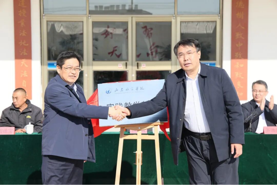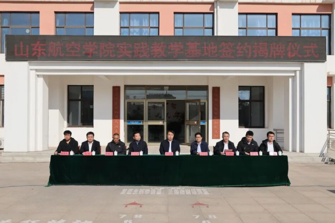 在与会领导的共同见证下,双方代表正式签署合作协议。肖忠峰书记与李宁波副区长共同为“山东航空学院实践教学基地”揭牌,标志着校地合作迈入实质性推进阶段。